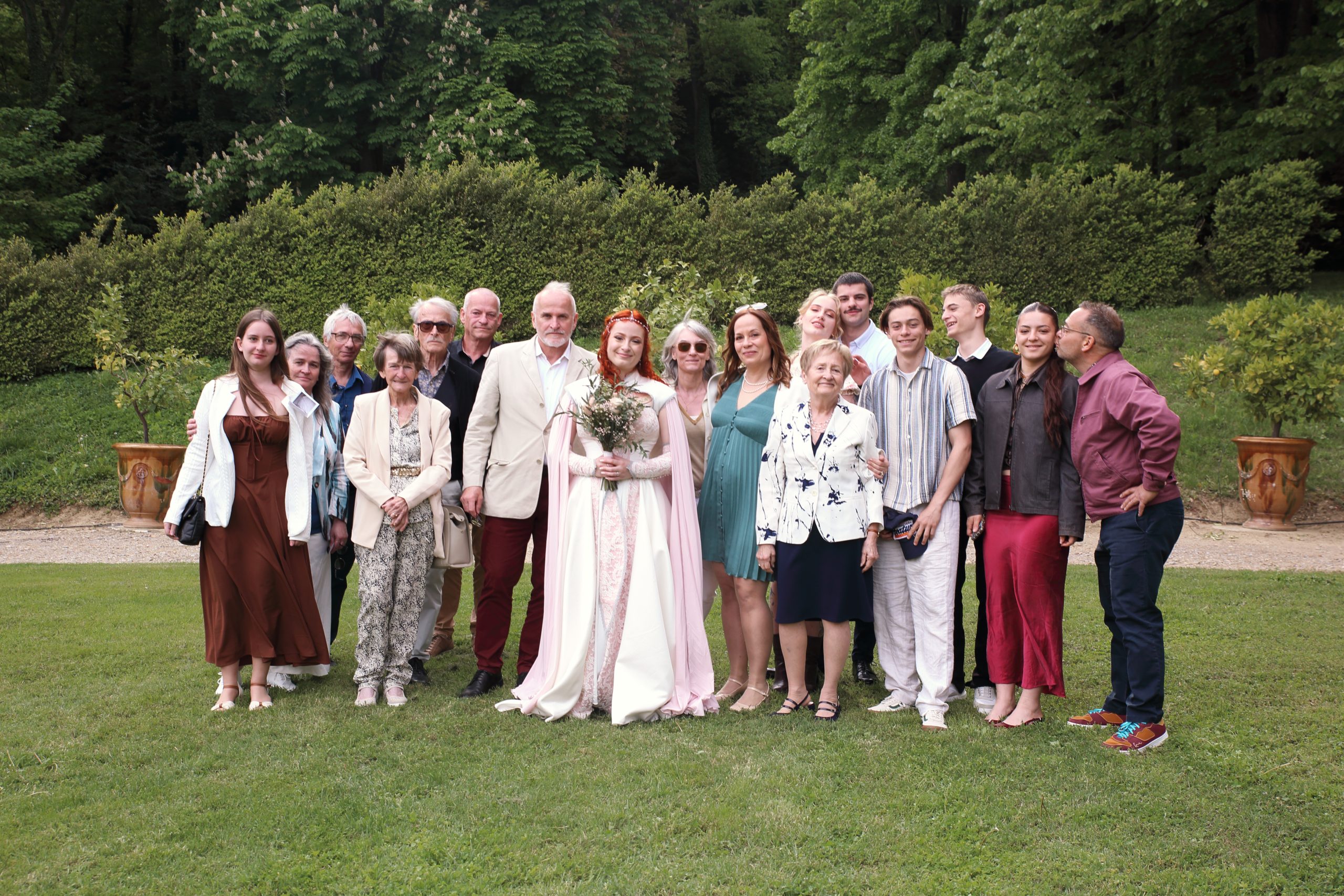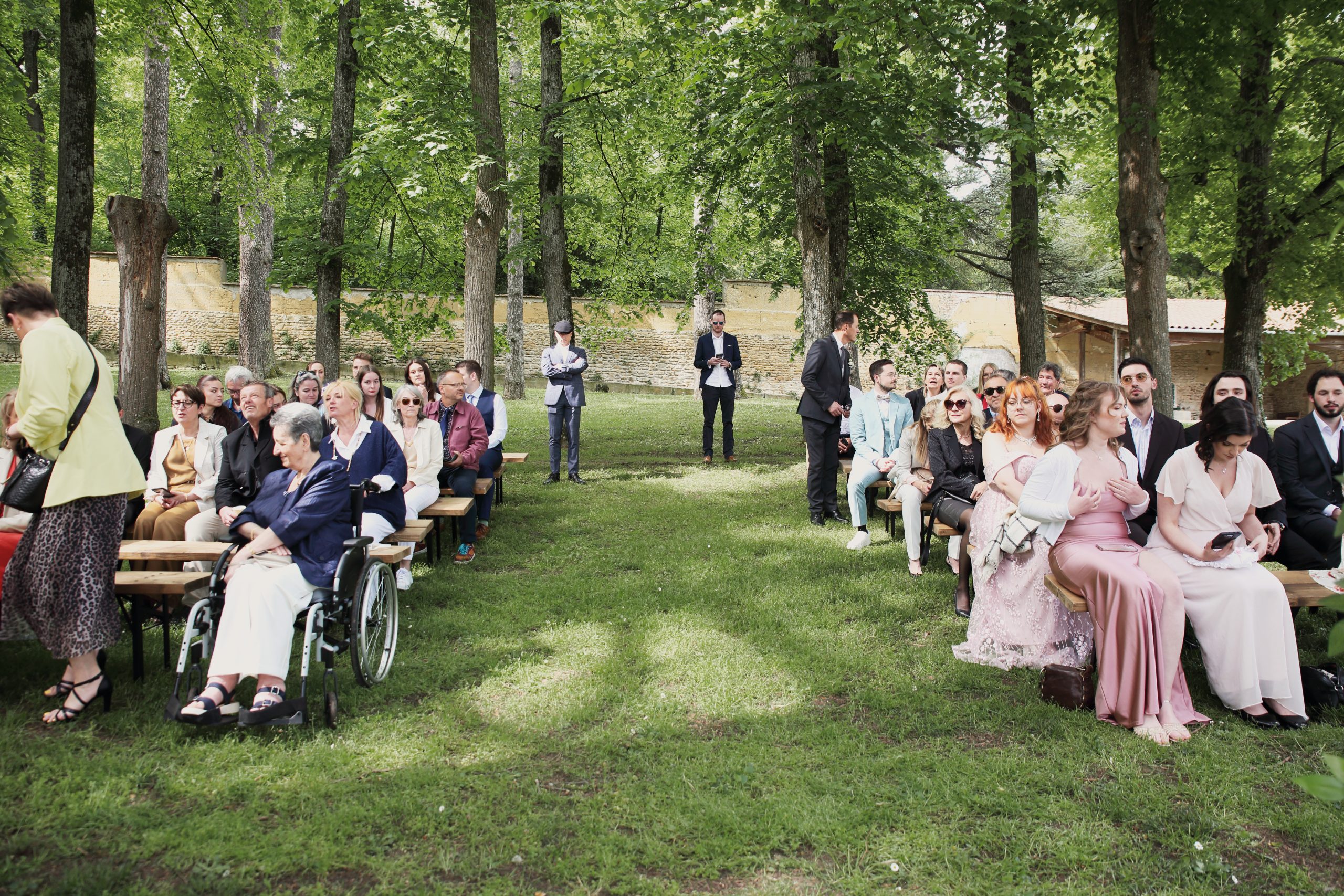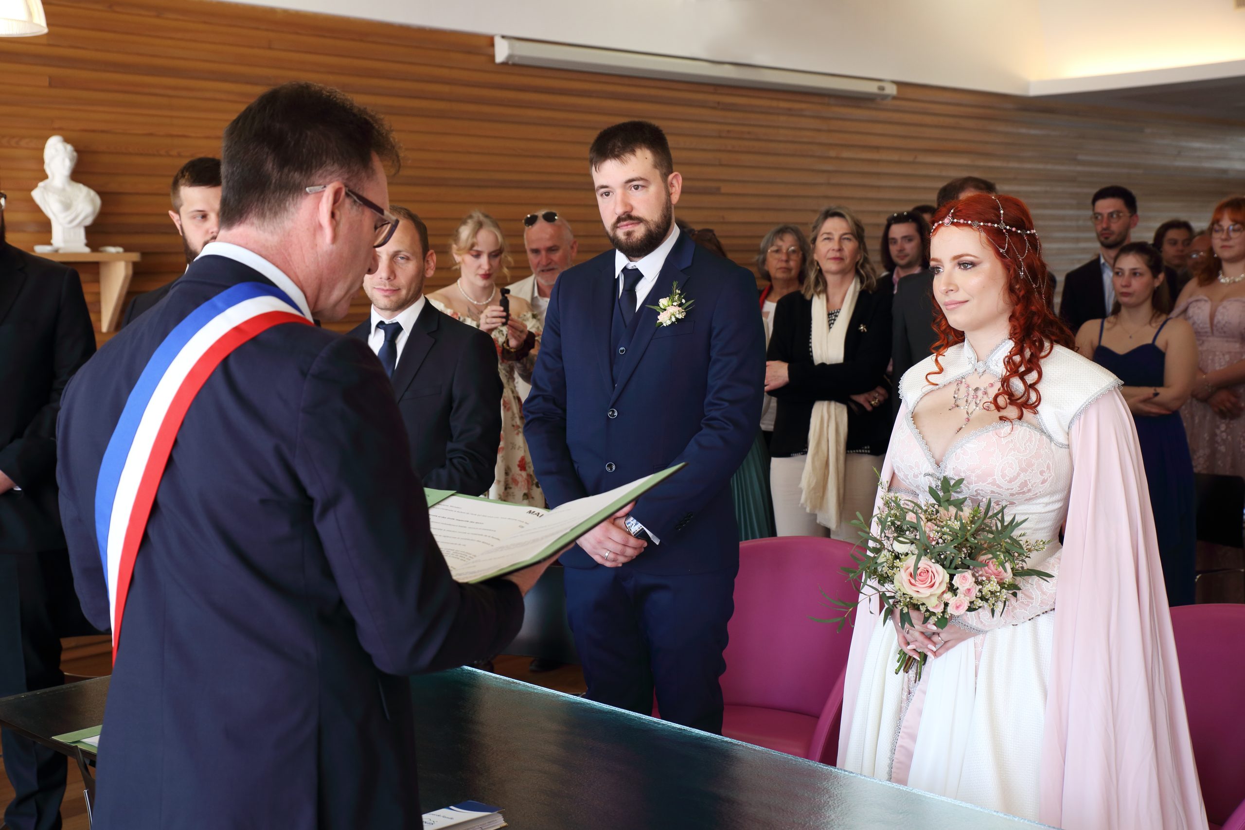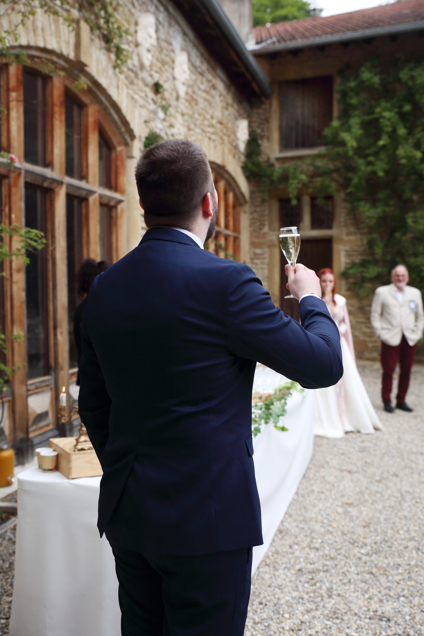Nous avons commencé par les préparatifs de la mariée, puis j’ai suivi les futurs mariés jusqu’à la mairie. La cérémonie laïque avait lieu entre les arbres, dans le parc d’un sublime château. Moi qui aime la magie, j’étais aux anges. L’ambiance était chargée en émotions, les discours tous plus touchant. Nous avons ensuite fait des photos de couple dignes d’un conte de fée, pour enfin nous diriger vers le vin d’honneur et la soirée.