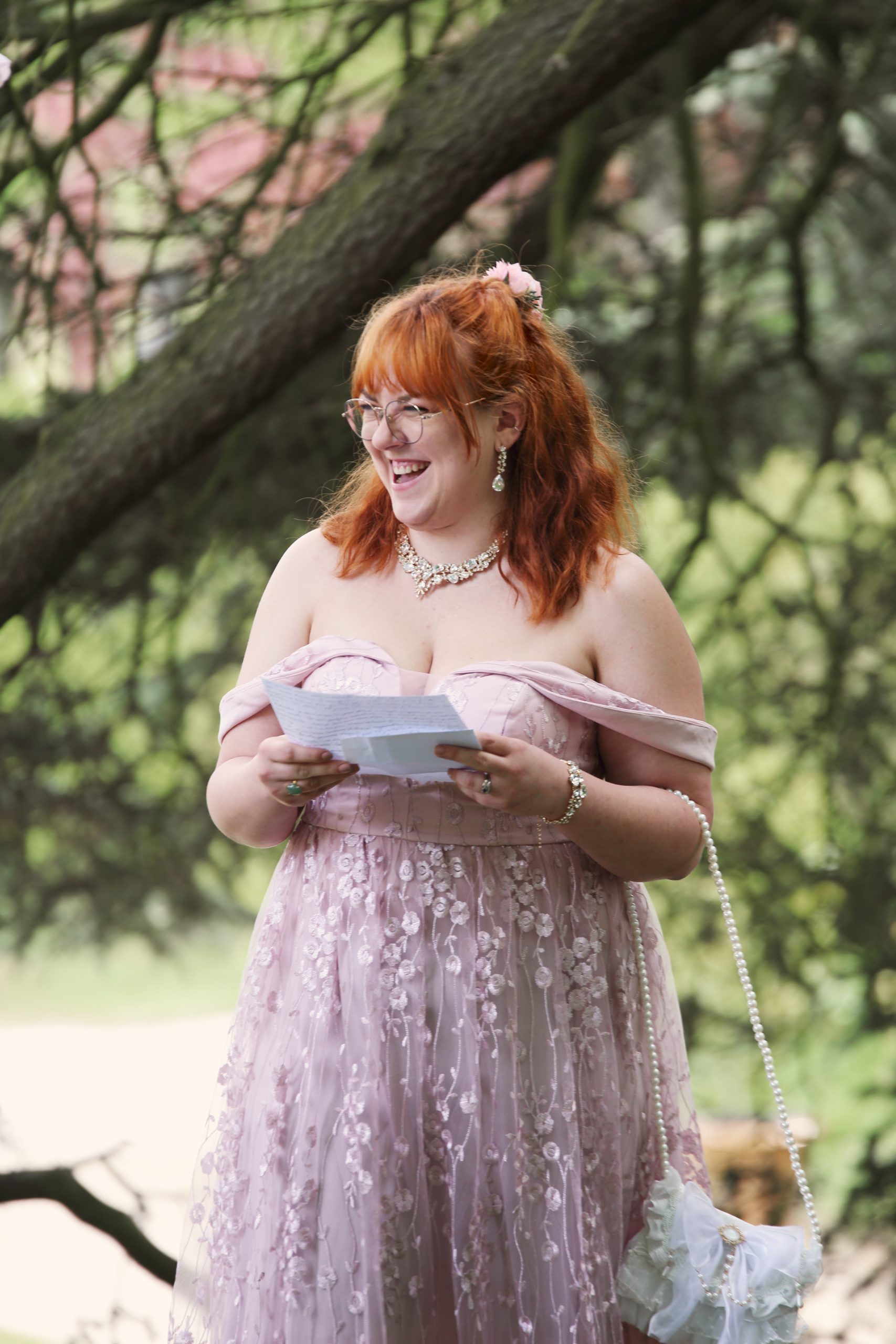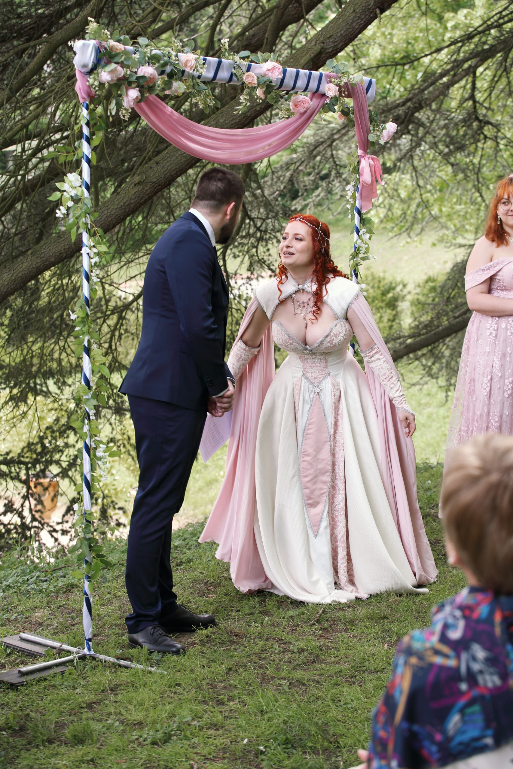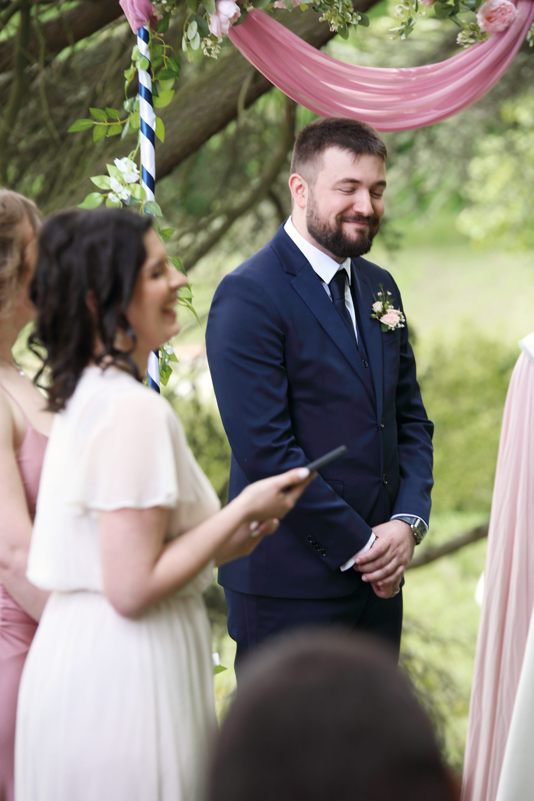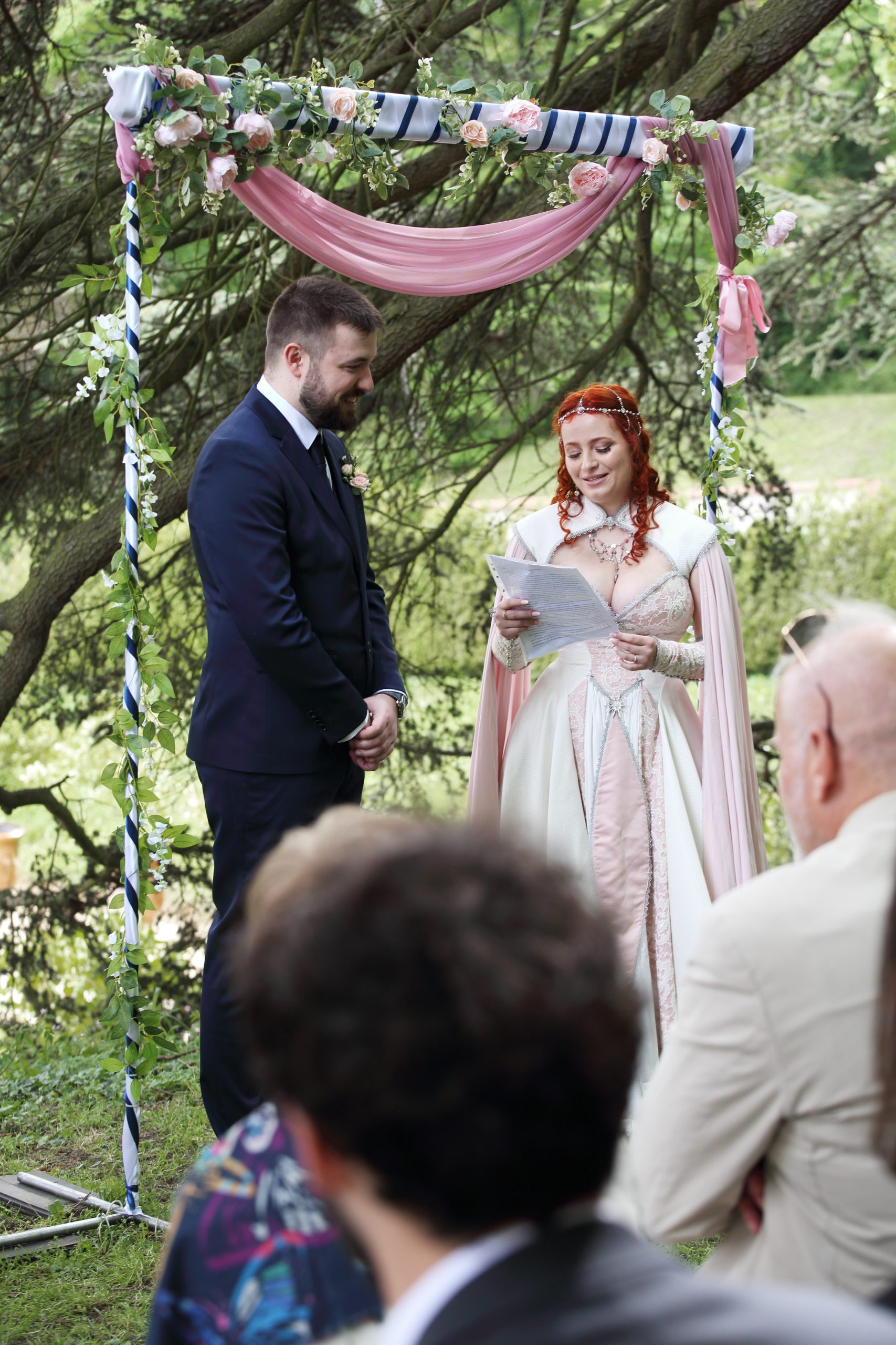 Nous avons commencé par les préparatifs de la mariée, puis j’ai suivi les futurs mariés jusqu’à la mairie. La cérémonie laïque avait lieu entre les arbres, dans le parc d’un sublime château. Moi qui aime la magie, j’étais aux anges. L’ambiance était chargée en émotions, les discours tous plus touchant. Nous avons ensuite fait des photos de couple dignes d’un conte de fée, pour enfin nous diriger vers le vin d’honneur et la soirée.